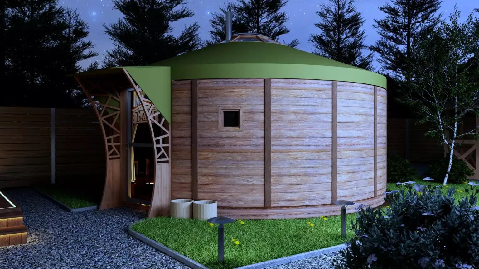 Баня в юрте от фабрики «Юрты Кавказа» — купольная баня как точка притяжения luxury-глемпинга.