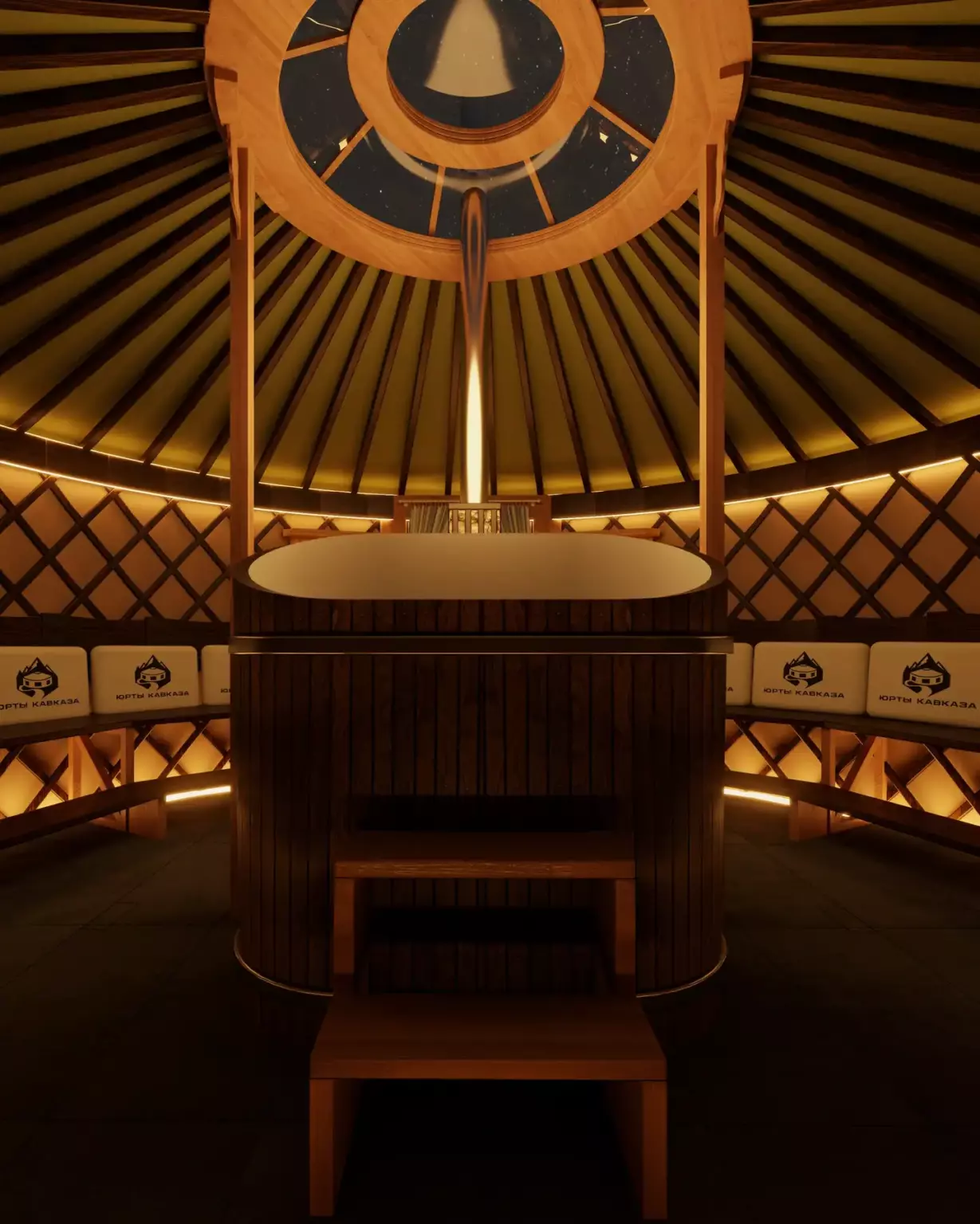 Баня в юрте от фабрики «Юрты Кавказа» — купольная баня как точка притяжения luxury-глемпинга.