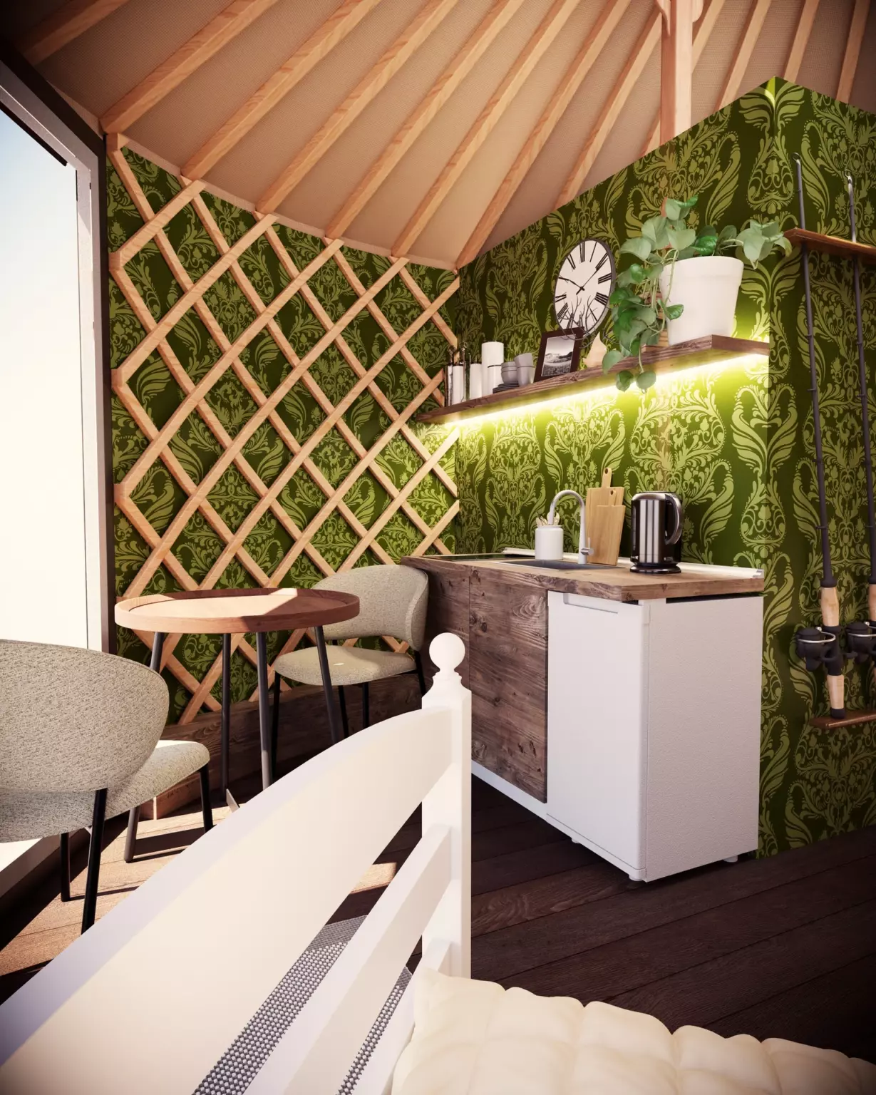 Эффектный внешний вид, высокий уровень комфорта и быстрая установка делают каркасную юрту идеальным форматом для глэмпинг-проектов. Минимальные сроки монтажа позволяют быстрее начать приём гостей и сократить срок окупаемости.